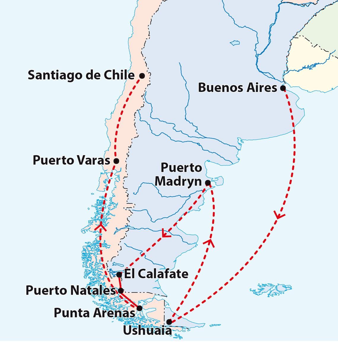 Von den eleganten Grossstädten Buenos Aires und Santiago de Chile über die Weiten Patagoniens bis zu den Gletschern des Südens – diese Rundreise verbindet die schönsten Naturkulissen und spannendsten Städte beider Länder.